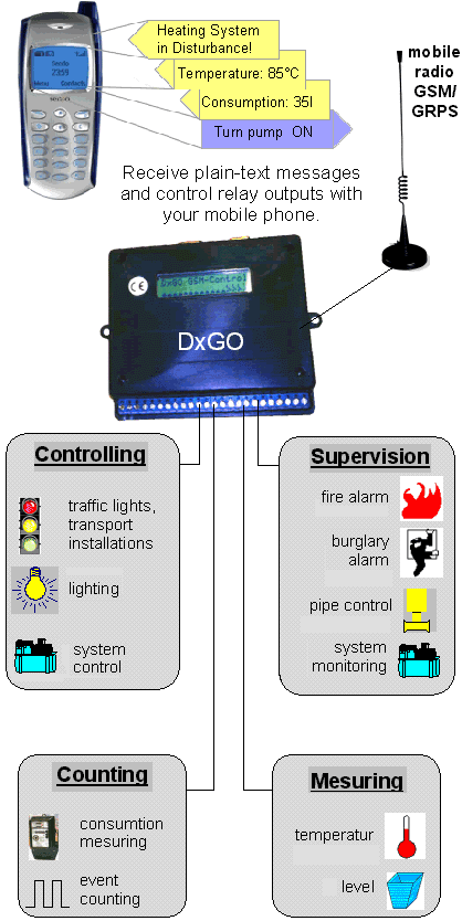 (www.dxgo.net). The transmission takes place as a short data telegram (Short Message